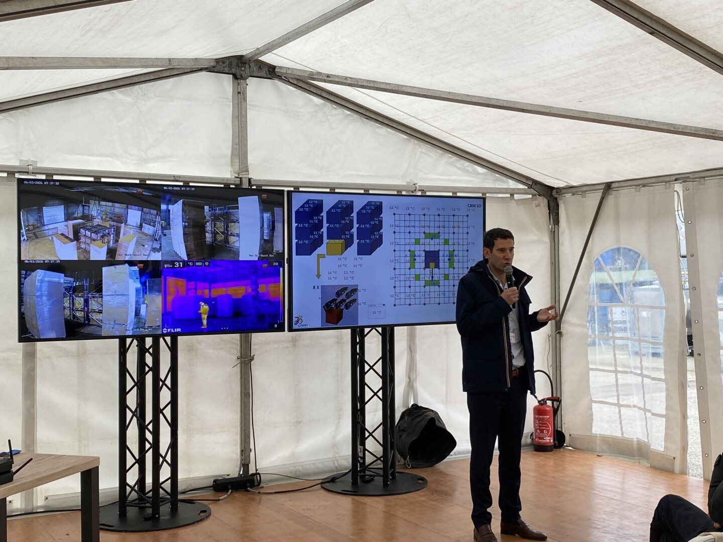 Les essais visent notamment à observer le comportement d’un incendie de batteries lithium-ion dans une configuration proche des conditions réelles de stockage en entrepôt et à évaluer l’efficacité d’un système sprinkler (réseau d’extinction automatique à eau) pour contenir un départ de feu de batterie, beaucoup plus difficile à éteindre qu’un feu dit « classique ».